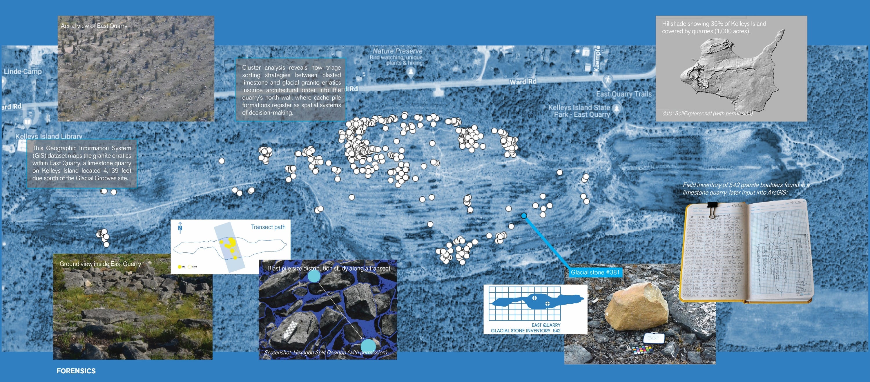 Publishing these artifacts is less about the date they were produced and more about sharing the work itself. Each piece reflects a step in FIELD OFFICE’s ongoing inquiry, whether it’s a slide from the Hexagon Quarry Analysis, a Blue Book documenting an exhibition, a technical report serving up quarry comparison, or a record of an expedition to study glacial formations.